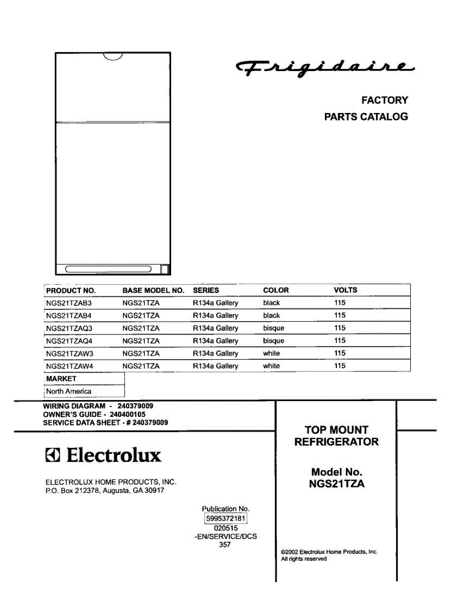 Parts for Frigidaire NGS21TZAW4: 01 - Cover Parts