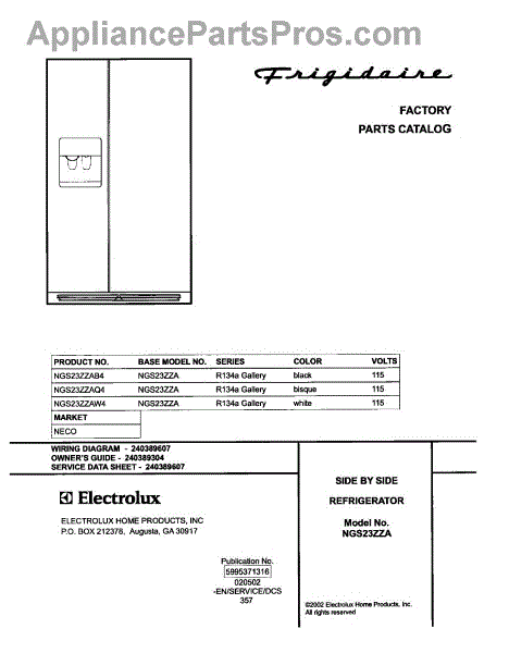 Parts for Frigidaire NGS23ZZAQ4: 01 - Cover Parts