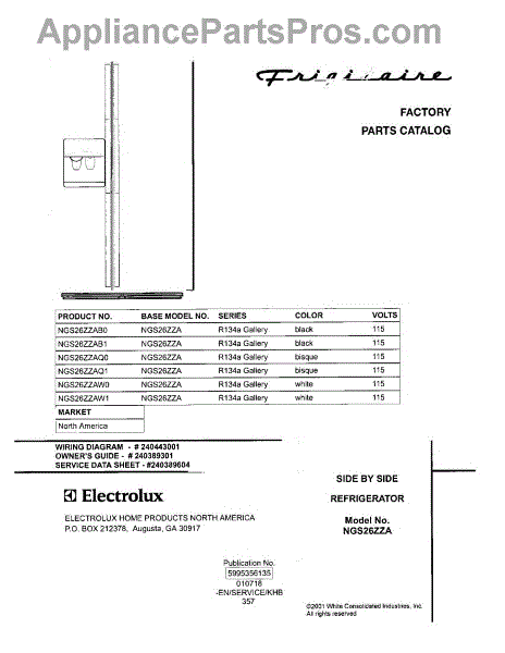 Parts for Frigidaire NGS26ZZAW1: 01 - Cover Parts