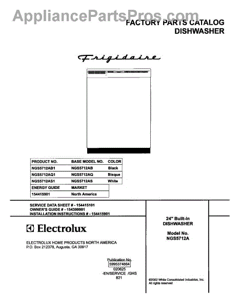 Parts for Frigidaire NGS5712AS1: 01 - Cover Parts