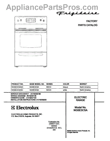 Parts for Frigidaire NGSE3CSAQC: 01 - Cover Parts