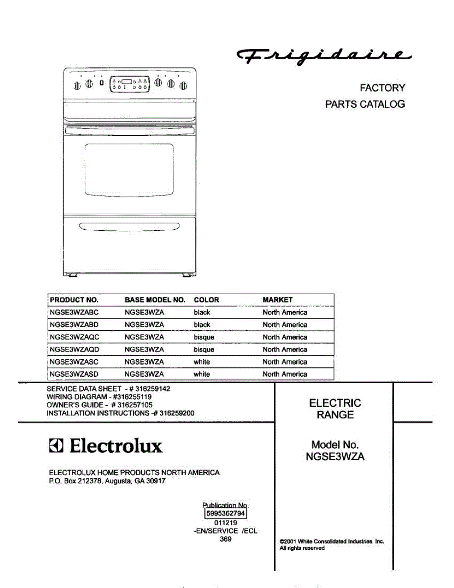 Parts for Frigidaire NGSE3WZASD: 01 - Cover Parts