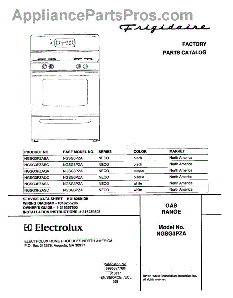 Parts for Frigidaire NGSG3PZABA: 01 - Cover Parts