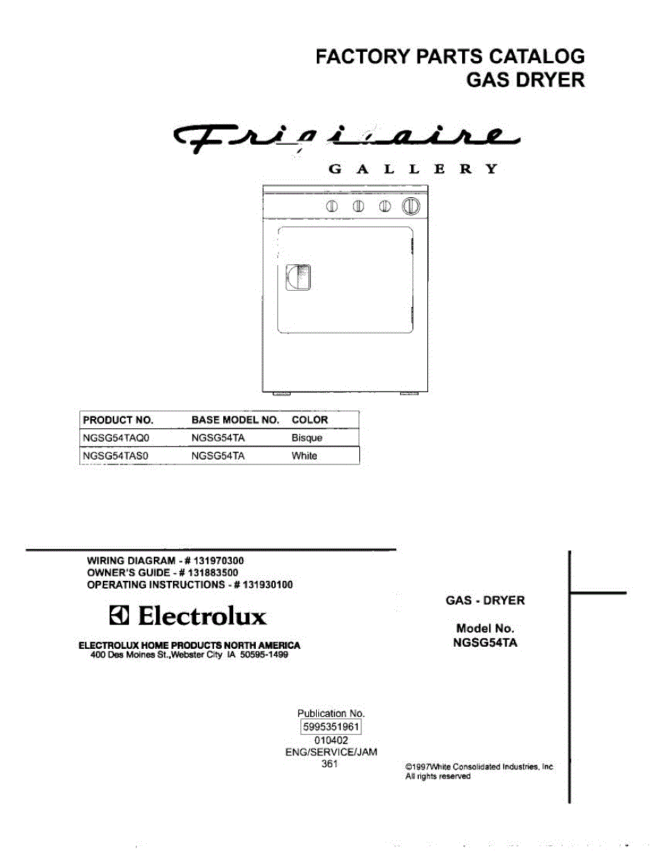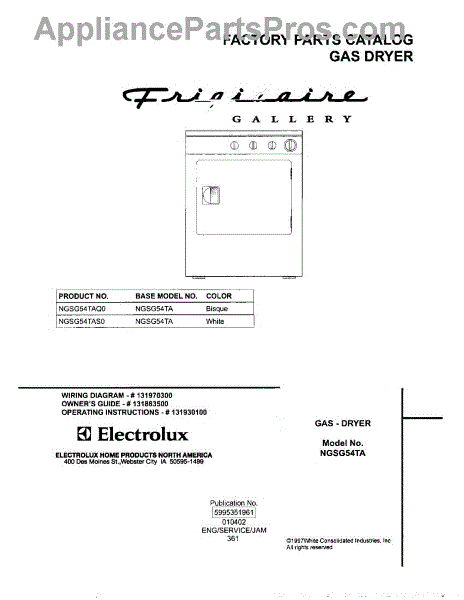 Parts for Frigidaire NGSG54TAS0: 01 - Cover Parts