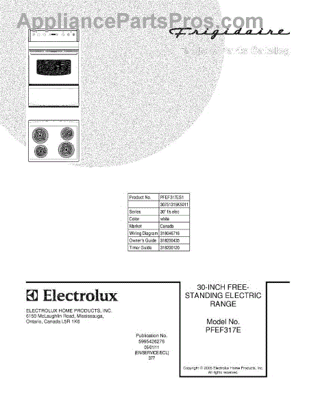 Parts for Frigidaire PFEF317ES1: 01 - Cover Parts