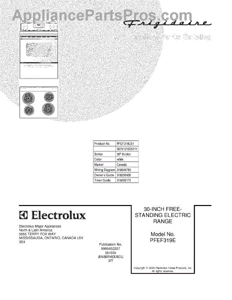 Parts for Frigidaire PFEF319ES1: 01 - Cover Parts