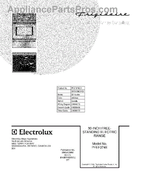 Parts for Frigidaire PFEF374EC1: 01 - Cover Parts