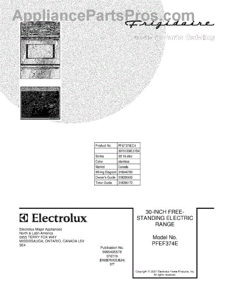 Parts for Frigidaire PFEF374EC4: 01 - Cover Parts