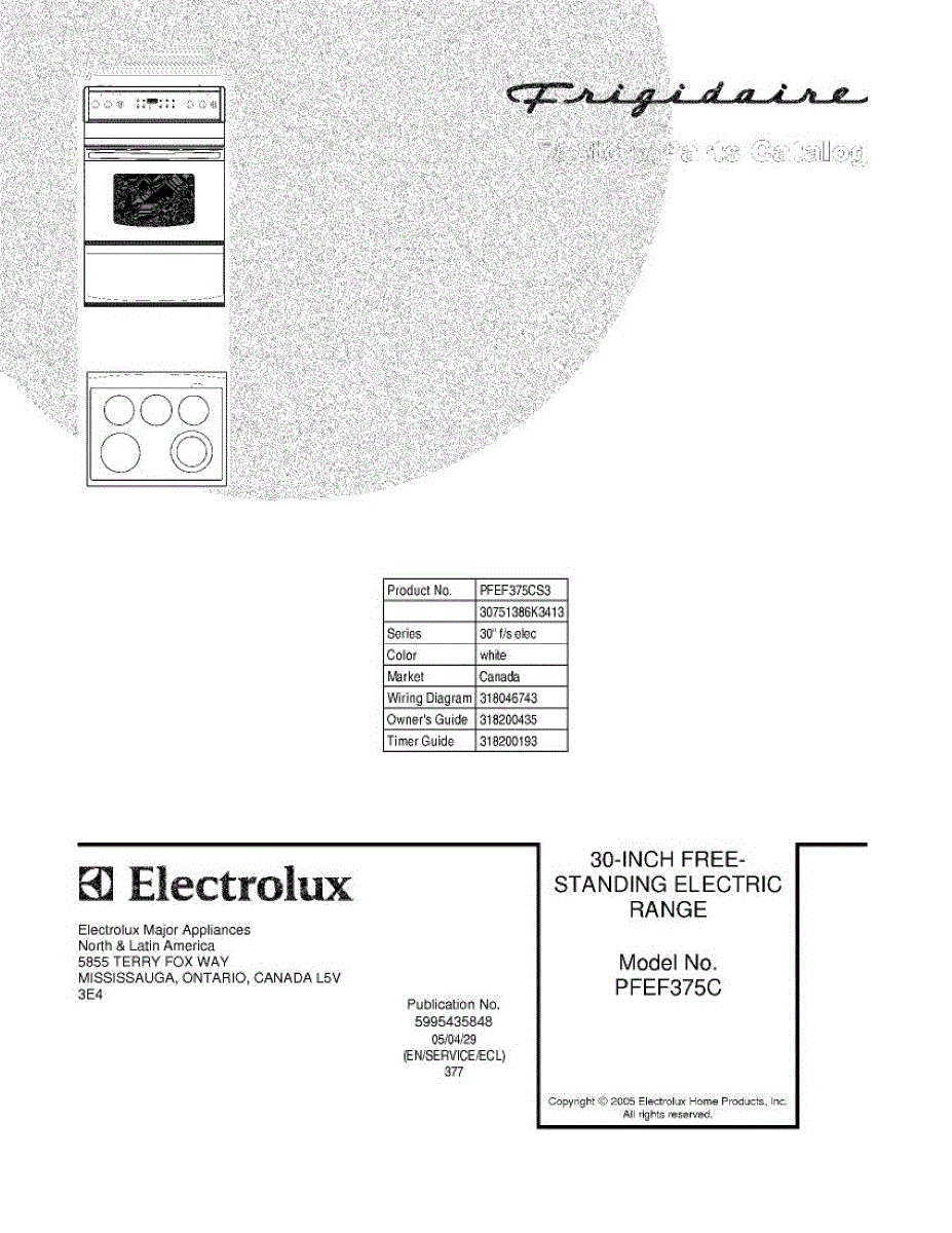 Parts for Frigidaire PFEF375CS3: 01 - Cover Parts