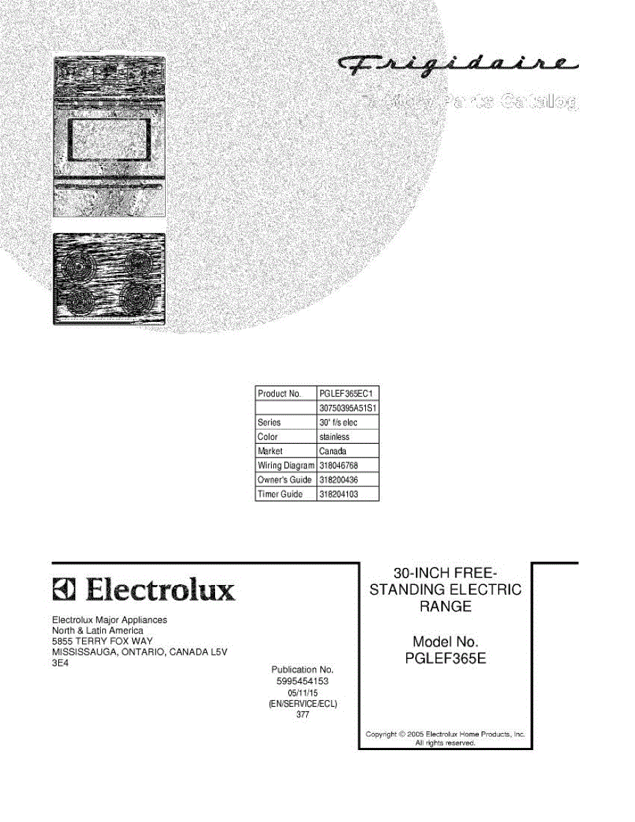 Parts for Frigidaire PGLEF365EC1: 01 - Cover Parts