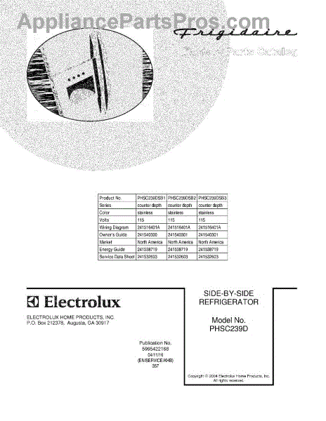 Parts for Frigidaire PHSC239DSB3: 01 - Cover Parts