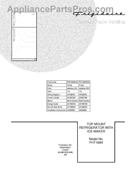 Parts for Frigidaire PHT189HSM4: 01 - Cover Parts