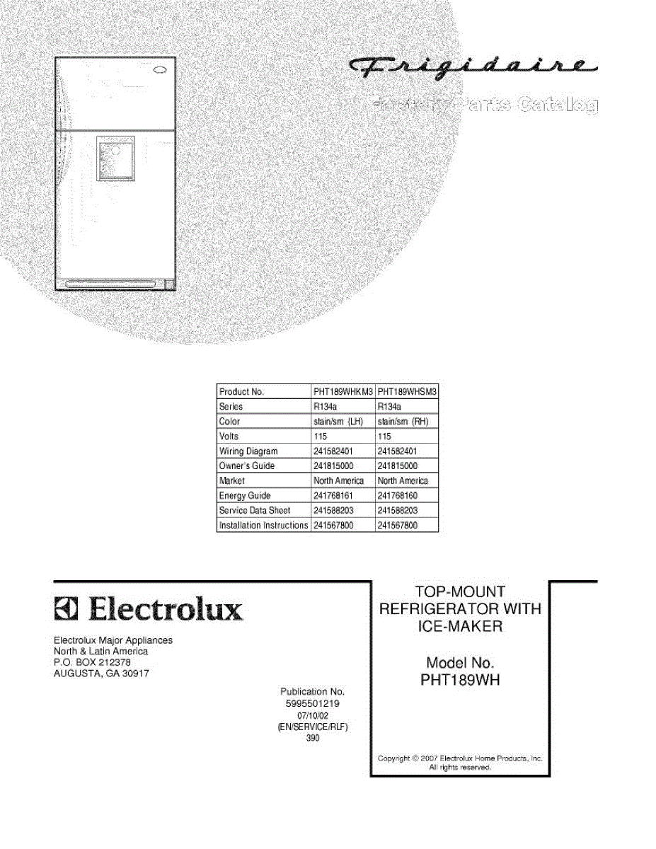 Parts for Frigidaire PHT189WHKM3: 01 - Cover Parts