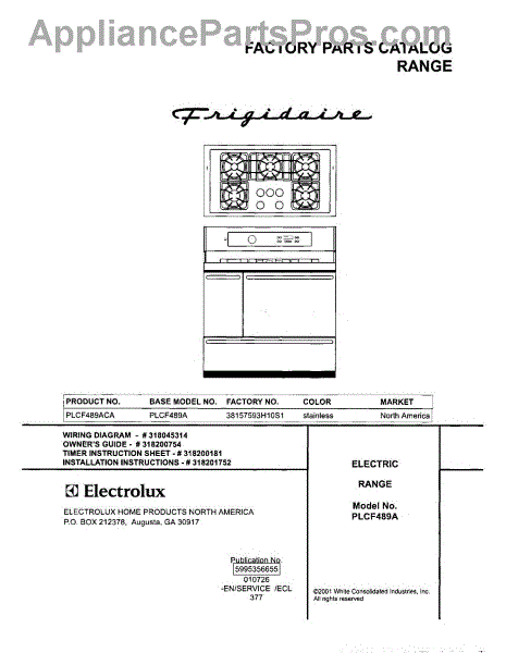 Parts for Frigidaire PLCF489ACA: 01 - Cover Parts