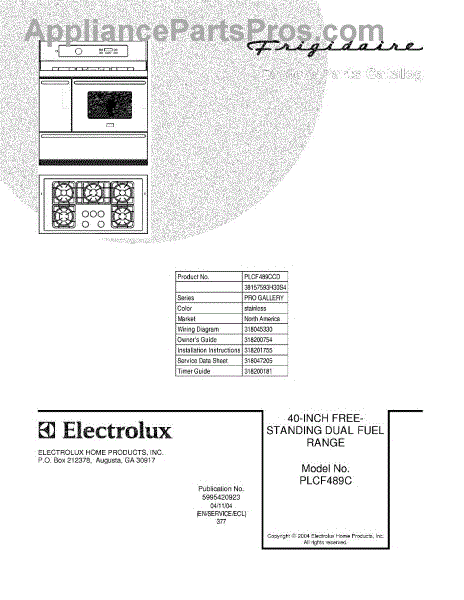 Parts for Frigidaire PLCF489CCD: 01 - Cover Parts