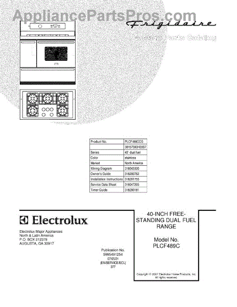 Parts for Frigidaire PLCF489CCG: 01 - Cover Parts