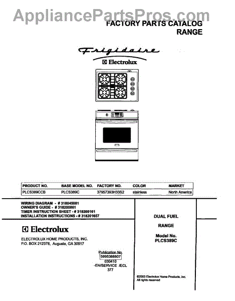 Parts for Frigidaire PLCS389CCB: 01 - Cover Parts