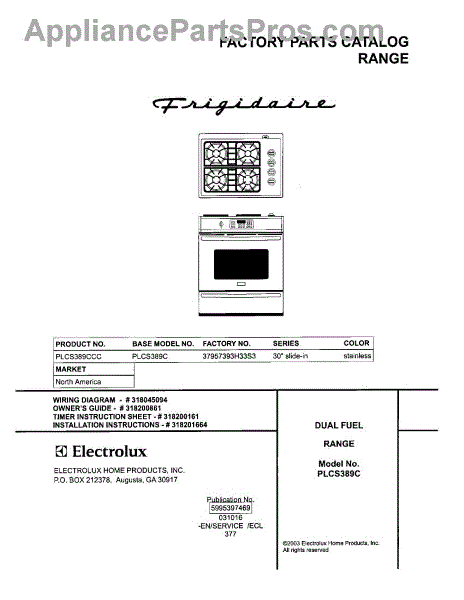 Parts for Frigidaire PLCS389CCC: 01 - Cover Parts