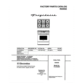 Parts for Frigidaire PLCS389DCA: 01 - Cover Parts