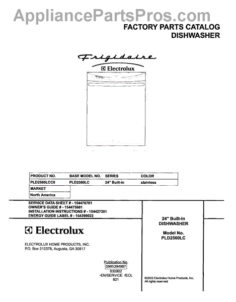 Parts for Frigidaire PLD2560LCC0: 01 - Cover Parts