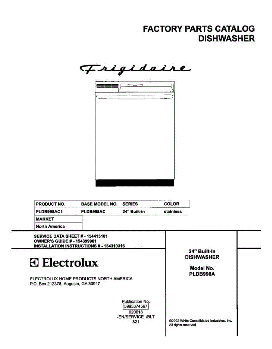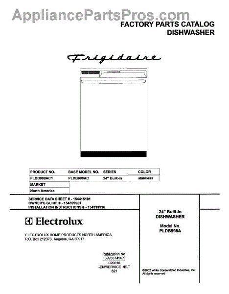 Parts for Frigidaire PLDB998AC1: 01 - Cover Parts