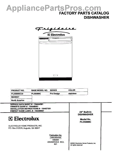 Parts for Frigidaire PLDS999CC0: 01 - Cover Parts