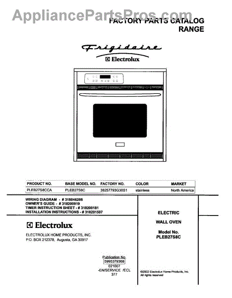 Parts for Frigidaire PLEB27S8CCA: 01 - Cover Parts