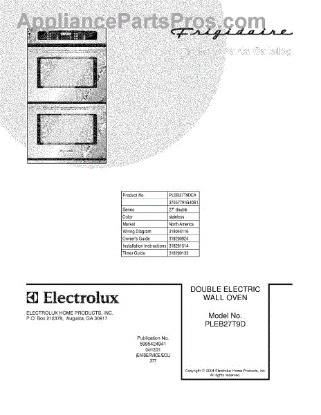 Parts for Frigidaire PLEB27T9DCA: 01 - Cover Parts