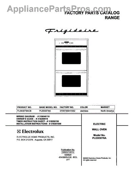 Parts for Frigidaire PLEB30T8ACB: 01 - Cover Parts
