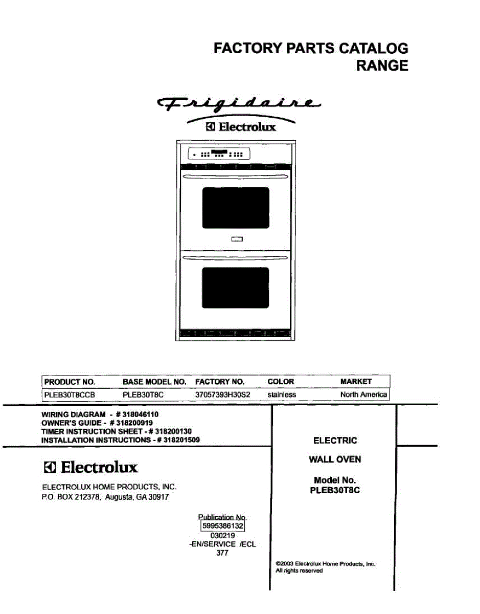 Parts for Frigidaire PLEB30T8CCB: 01 - Cover Parts