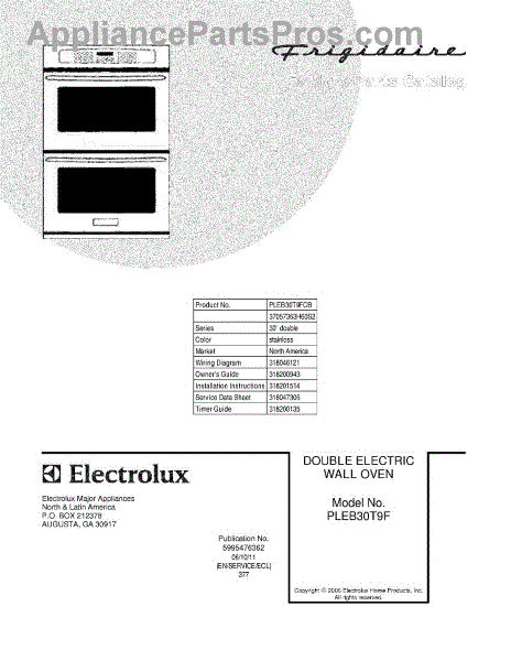 Parts for Frigidaire PLEB30T9FCB: 01 - Cover Parts