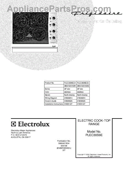 Parts for Frigidaire PLEC30S9ECB: 01 - Cover Parts