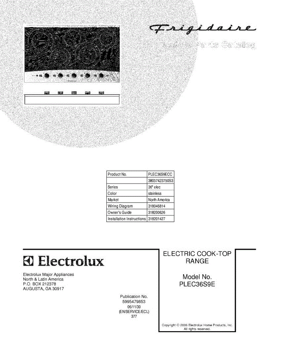 Parts for Frigidaire PLEC36S9ECC: 01 - Cover Parts