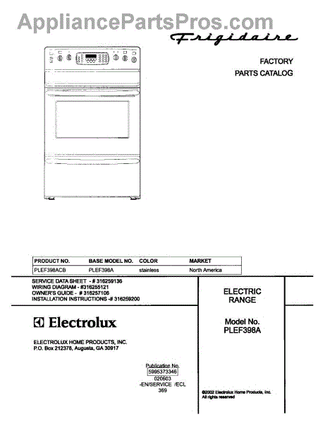 Parts for Frigidaire PLEF398ACB: 01 - Cover Parts