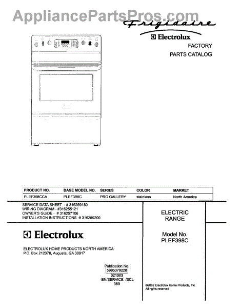 Parts for Frigidaire PLEF398CCA: 01 - Cover Parts