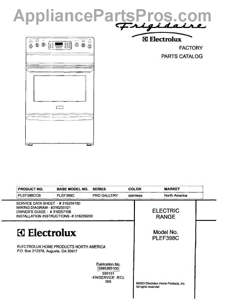 Parts for Frigidaire PLEF398CCB: 01 - Cover Parts