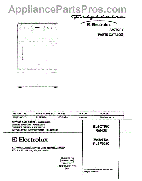 Parts for Frigidaire PLEF398CCC: 01 - Cover Parts