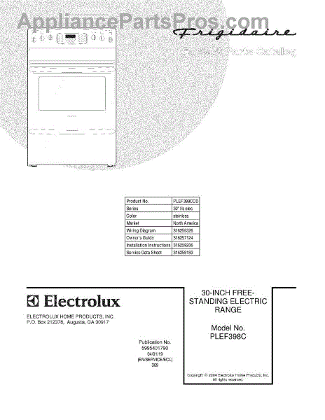 Parts for Frigidaire PLEF398CCD: 01 - Cover Parts
