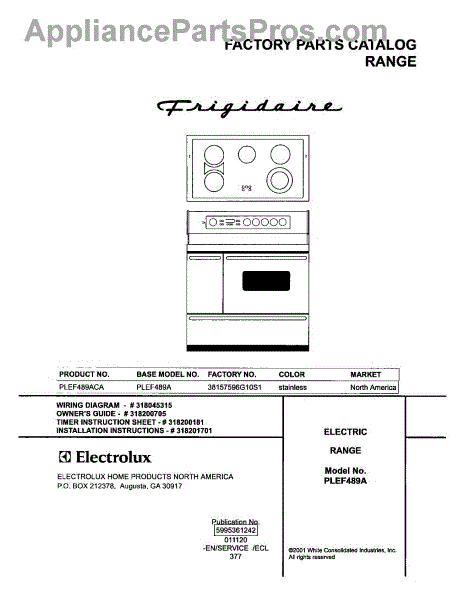Parts for Frigidaire PLEF489ACA: 01 - Cover Parts