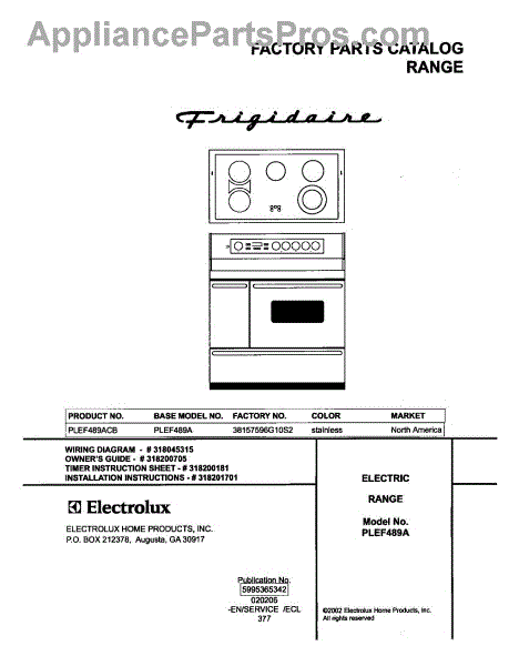 Parts for Frigidaire PLEF489ACB: 01 - Cover Parts