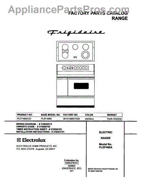 Frigidaire Range Parts