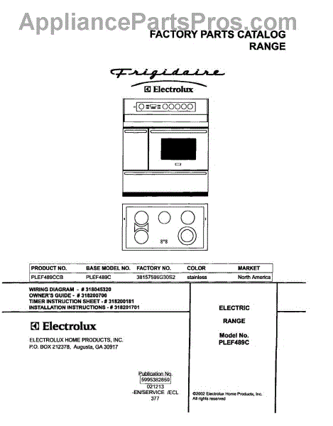 Parts for Frigidaire PLEF489CCB: 01 - Cover Parts