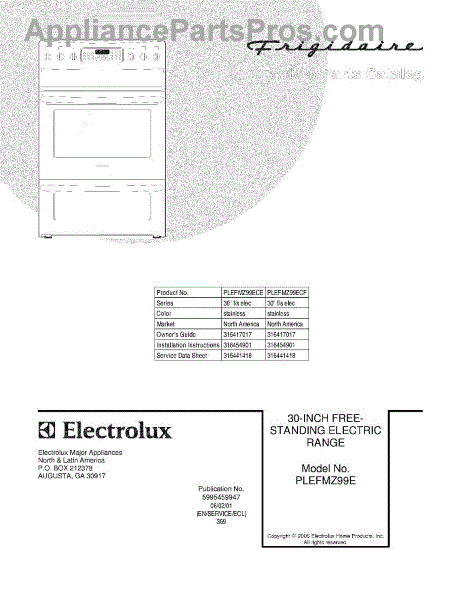 Parts for Frigidaire PLEFMZ99ECE: 01 - Cover Parts