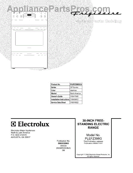 Parts for Frigidaire PLEFZ398GCA: 01 - Cover Parts