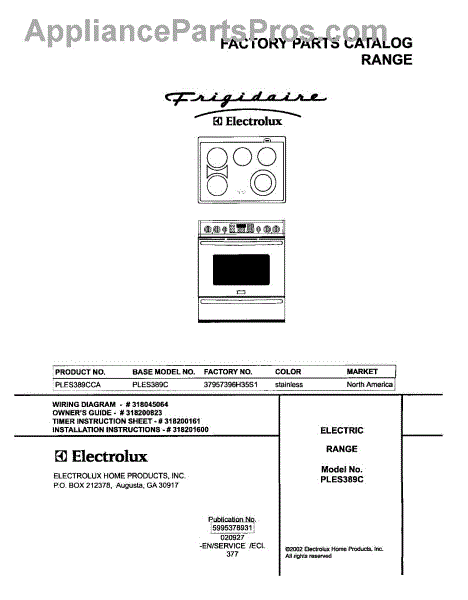 Parts for Frigidaire PLES389CCA: 01 - Cover Parts