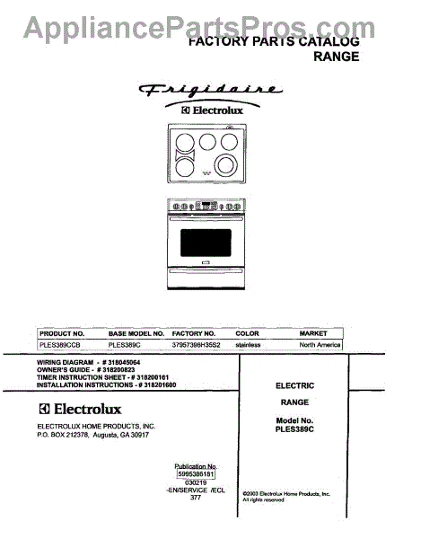 Parts for Frigidaire PLES389CCB: 01 - Cover Parts