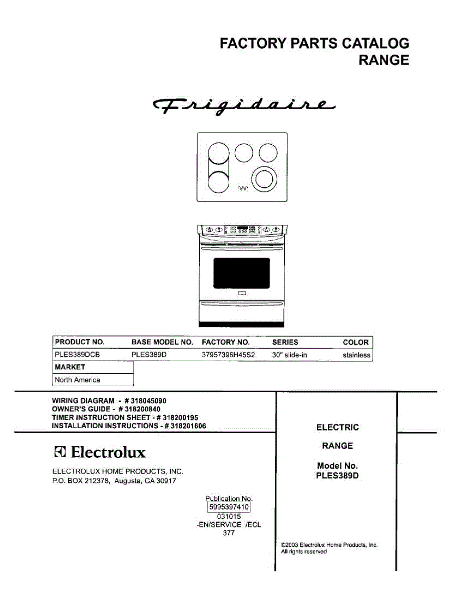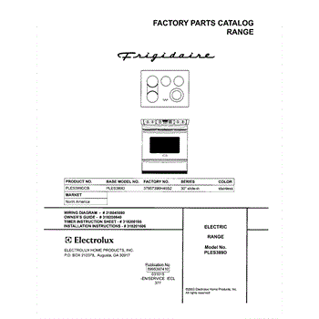 Parts for Frigidaire PLES389DCB: 01 - Cover Parts