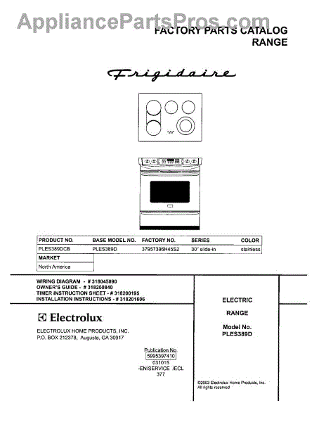 Frigidaire Range Parts