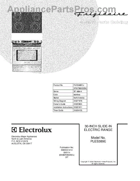 Parts for Frigidaire PLES389ECJ: 01 - Cover Parts