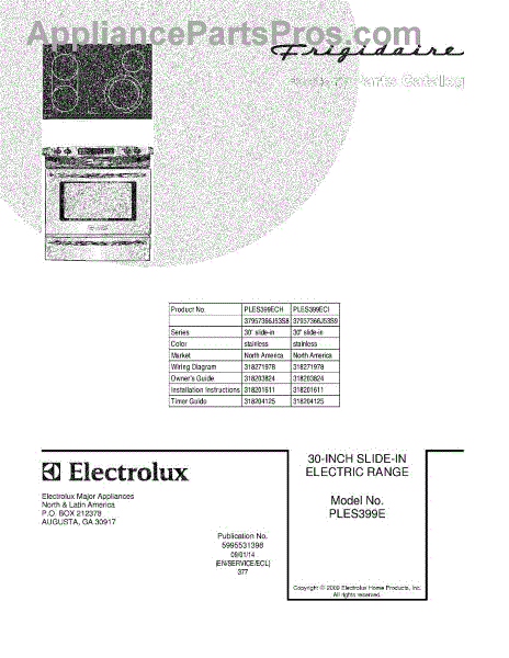Parts for Frigidaire PLES399ECI: 01 - Cover Parts